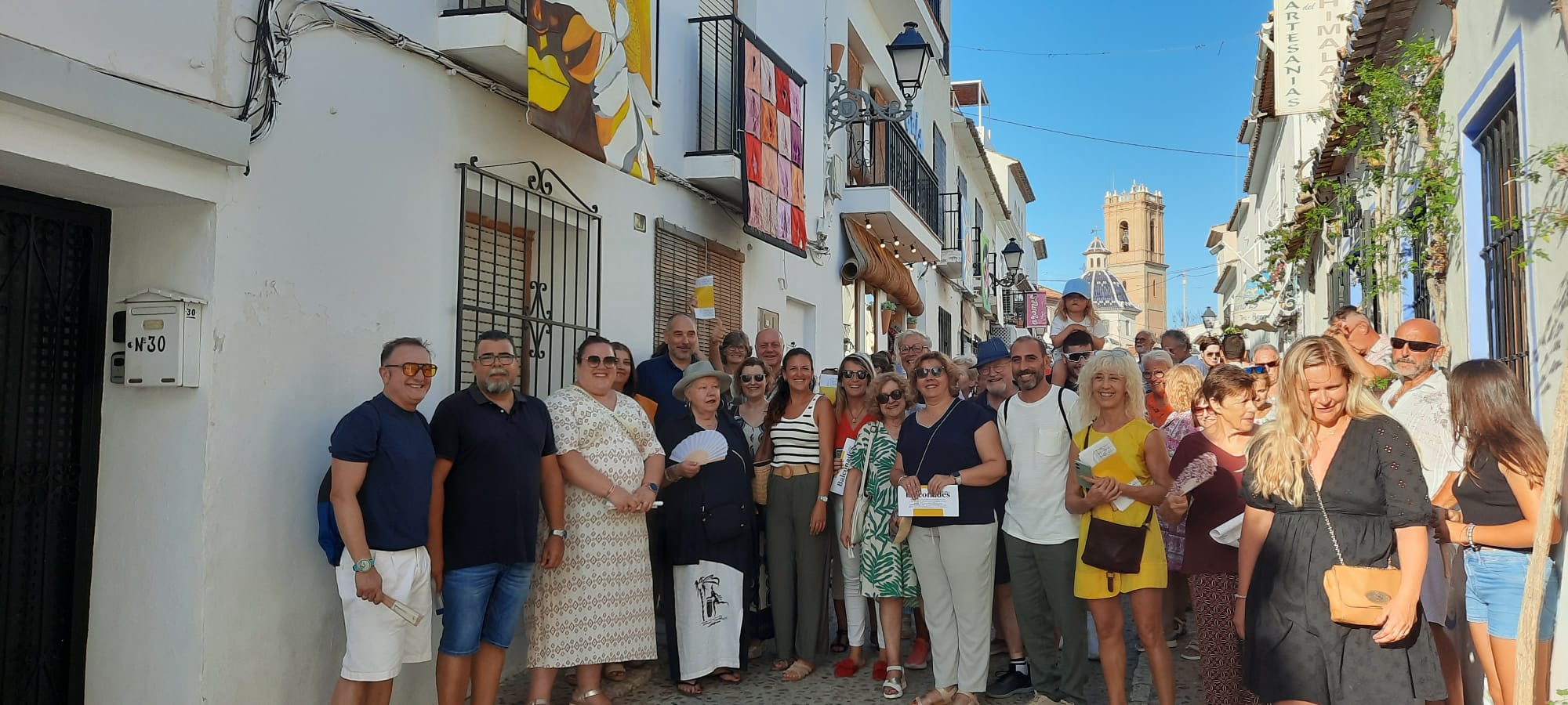 La exposición de arte callejera celebra su vigésimo sexto aniversario en plena forma, con la participación de 52 artistas. La muestra recorre los balcones más céngtricos de la vecina localidad alteana, y en su puesta en escena junto a la concejala de Cultura del municipio, Pepa Victoria Pérez y muchos de los autores de los lienzos, han querido estar la concejala de Presidencia y el concejal de Cultura de l’Alfàs del Pi, Mayte García y Manuel Casado.