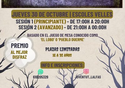 La concejalía de Juventud del Ayuntamiento de l’Alfàs del Pi ha organizado dos actividades gratuitas con motivo de la celebración de Halloween, dirigidas tanto al público juvenil como a las familias del municipio. Se trata de propuestas que buscan ofrecer alternativas de ocio saludables, participativas y adaptadas a esta popular festividad.