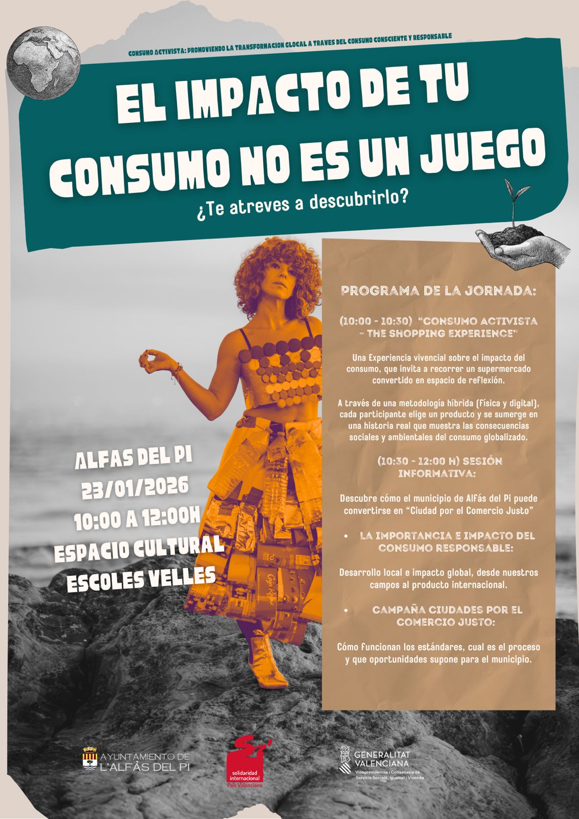 Una actividad que conecta ciudadanía, políticas públicas y justicia global, “posicionándonos como un municipio comprometido con un modelo más justo, sostenible y responsable”. Una jornada que cuenta con el apoyo de la Generalitat Valenciana y el Ayuntamiento de Alfàs del Pi.