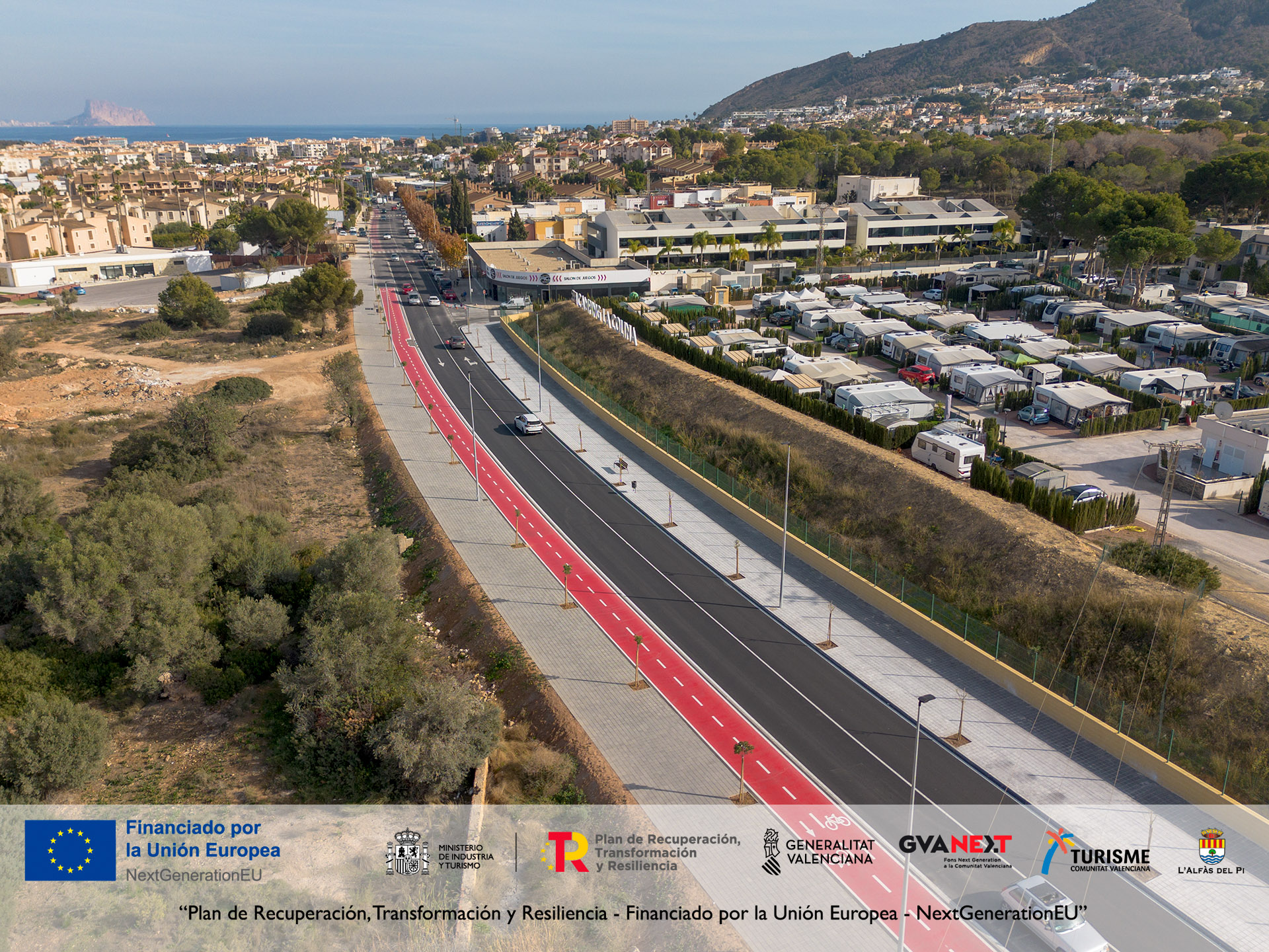 El Ayuntamiento de l’Alfàs del Pi ha presentado la remodelación del vial turístico Camí Vell d’Altea, tras la finalización de las obras de mejora de movilidad, capacidad y seguridad ejecutadas con financiación europea. La actuación, ya concluida, convierte este tramo en el principal acceso al Albir y refuerza la conectividad sostenible entre Benidorm, l’Alfàs y Altea. La inversión total asciende a 961.456,54 euros, un importe subvencionado al 100 % con fondos europeos en el marco de la Estrategia de Sostenibilidad Turística en Destino (PSTD), dentro del Plan de Recuperación, Transformación y Resiliencia, financiado por la Unión Europea – NextGenerationEU.