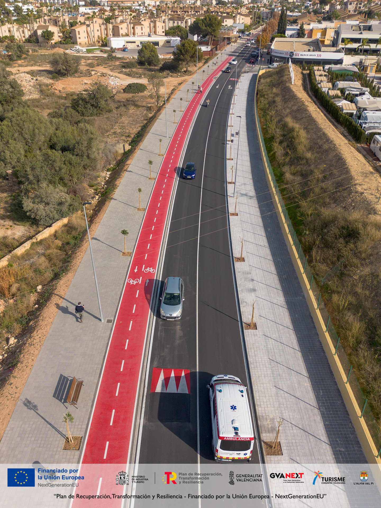 El Ayuntamiento recuerda que l’Alfàs del Pi ha conseguido dos Planes de Sostenibilidad Turística en Destino, avalados por el Ministerio y la Generalitat Valenciana, y financiados al 100 % con fondos europeos. Estas subvenciones, de 2.441.513 euros y 2.001.722 euros, permitirán seguir desarrollando proyectos orientados a mejorar la conectividad, movilidad, accesibilidad, seguridad e inteligencia urbana en todo el término municipal. Con la remodelación del Camí Vell d’Altea, l’Alfàs avanza hacia un modelo de movilidad sostenible y un diseño urbano pensado para las personas, en sintonía con los objetivos europeos y con la apuesta del municipio por un desarrollo urbano más seguro, eficiente y accesible.