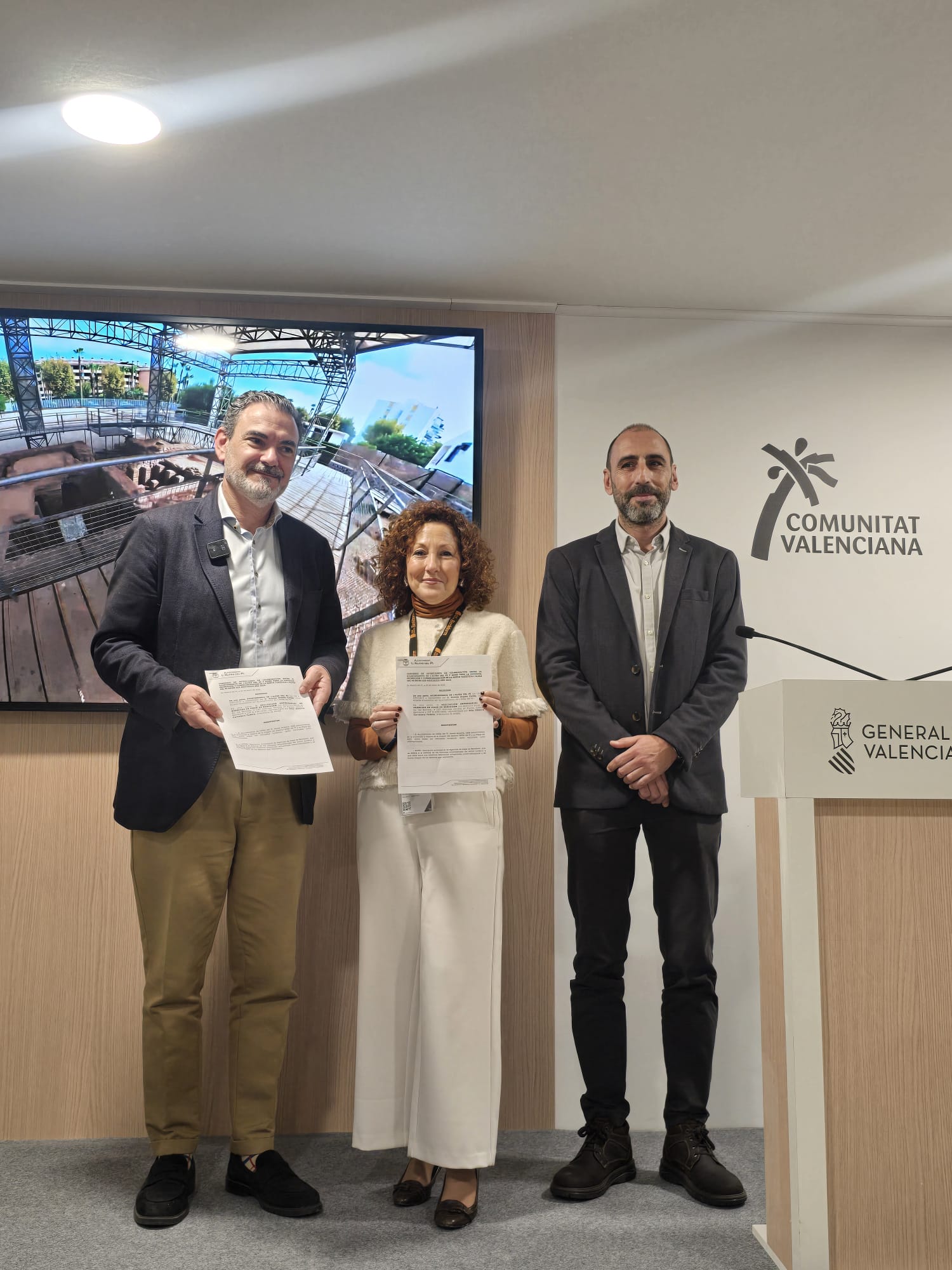 La firma del convenio con AVIBE contó con la presencia del alcalde de l’Alfàs del Pi, Vicente Arques, el concejal de Cultura, Manuel Casado, y la presidenta de AVIBE, Débora Carretero.