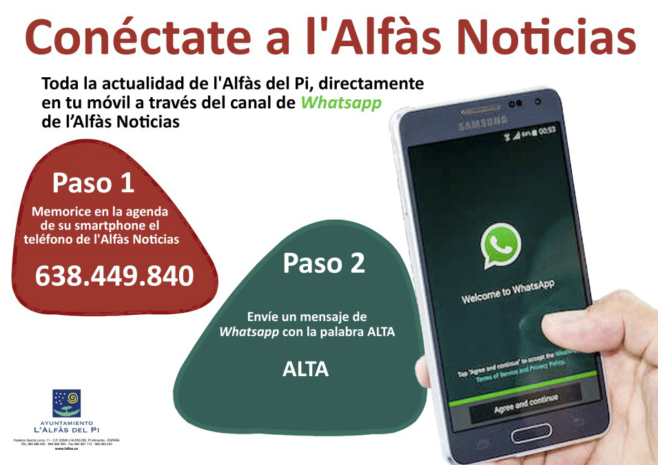 El ayuntamiento de l’Alfàs del Pi ofrece a todos los vecinos la oportunidad de recibir, de forma completamente gratuita, toda la actualidad e información de servicio del municipio directamente en el móvil gracias al servicio de Whatsapp l’Alfàs Noticias.