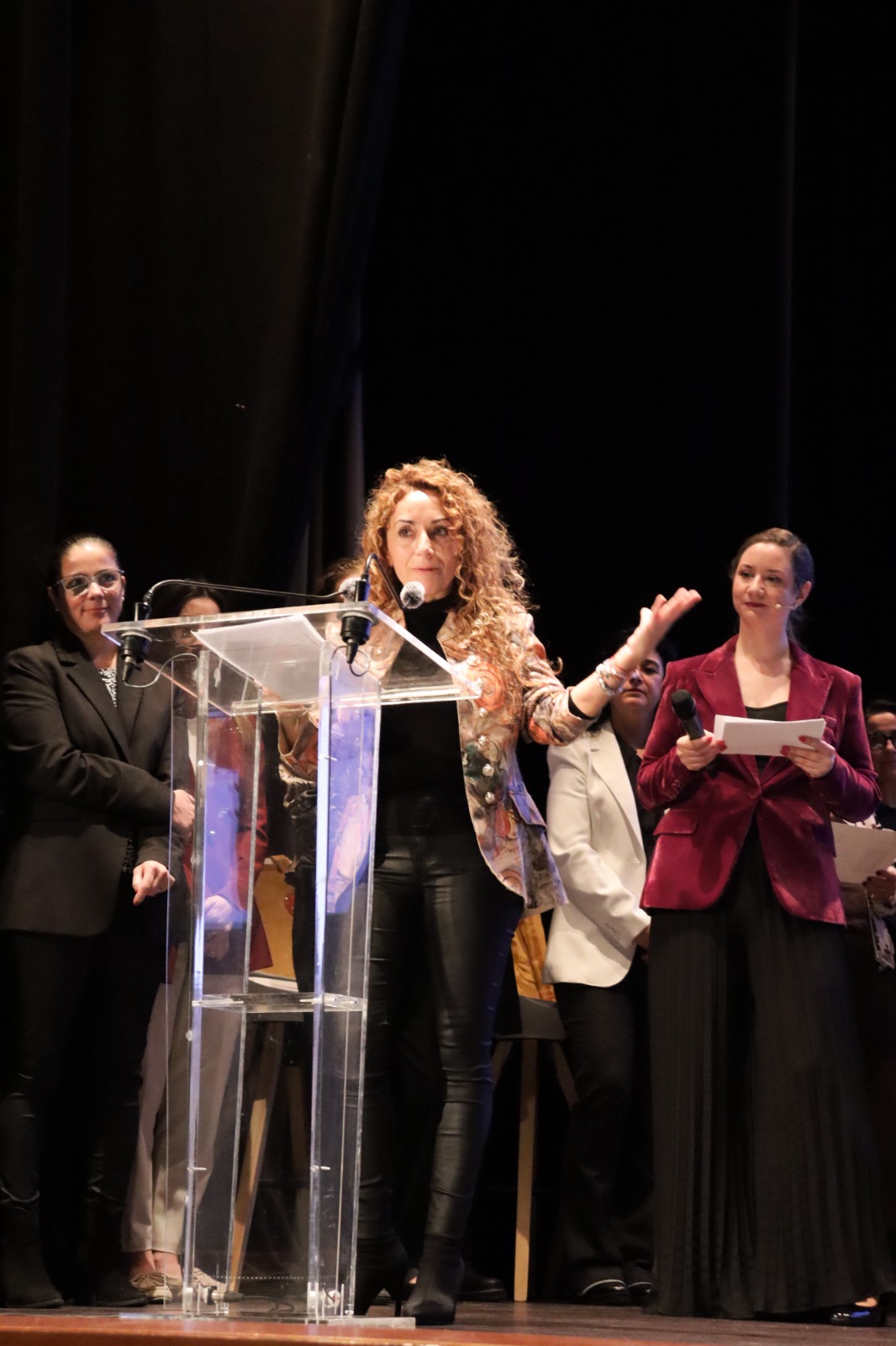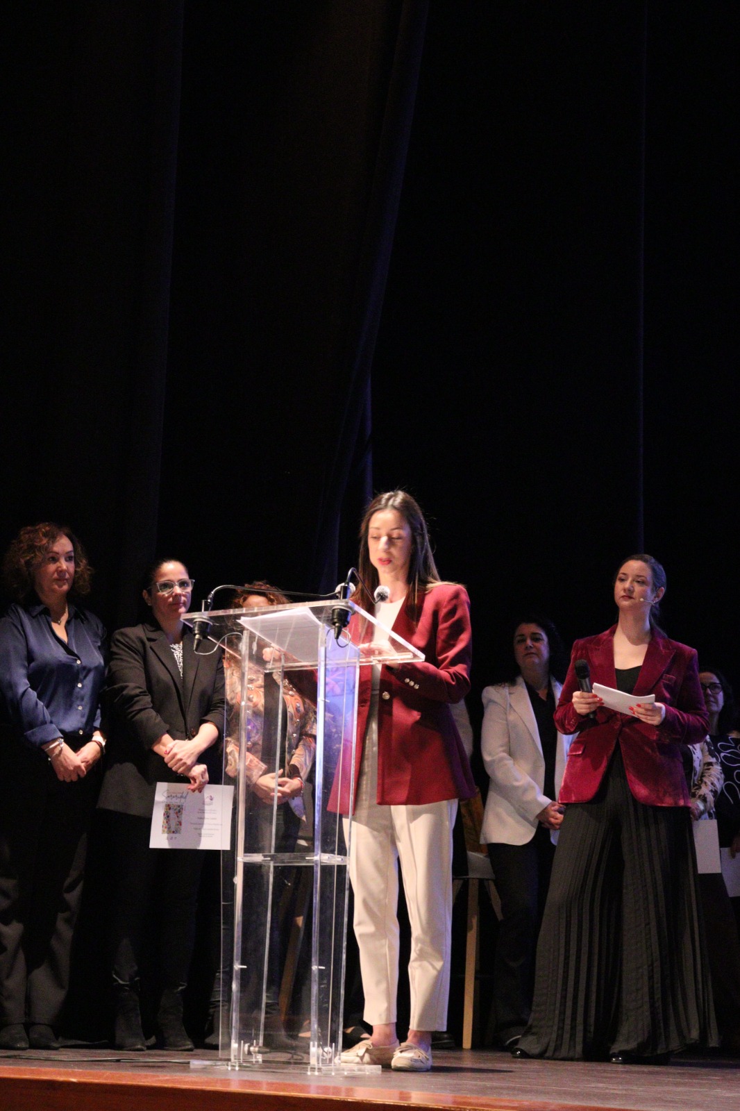 Mujeres referentes compartieron un coloquio inspirador. La gala incluyó un coloquio con cinco mujeres referentes en sus ámbitos profesionales. Todas fueron homenajeadas por su contribución a la igualdad y al liderazgo femenino. Participaron: Consuelo del Val, por su brillante trayectoria como docente en métodos y técnicas de investigación social, y como referente en la enseñanza y la investigación. Cátedra de igualdad de la UNED. Marta Blanco, por su extraordinario recorrido en el ámbito académico y su impulso al pensamiento crítico y la cultura. Angeles González- Sinde, por su labor como creadora, guionista y directora de cine, siempre en defensa del arte y la igualdad. Ana García Alcolea.por su sólida trayectoria en el ámbito sindical y la salud laboral, Maleni López presidenta de Corazón exprés, por su implicación social y su apoyo a los proyectos que mejoran la vida de las personas en nuestra comarca.