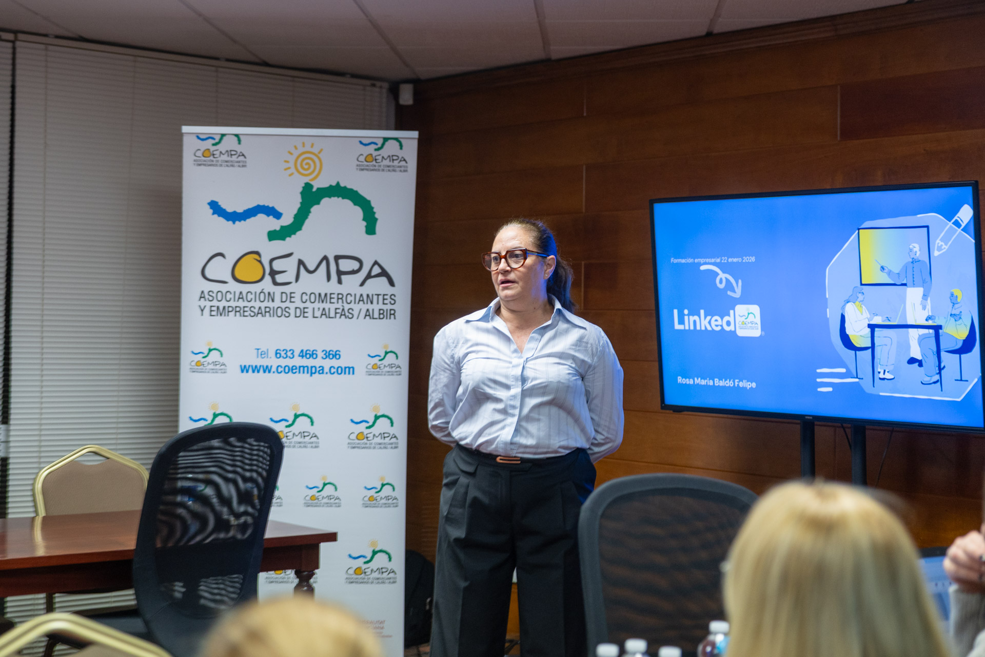 La experta Rosa Baldó ha sido la encargada de impartir este práctico taller, dirigido a todos los públicos y muy especialmente a las empresas y comercios asociados a COEMPA al centro de negocios .
