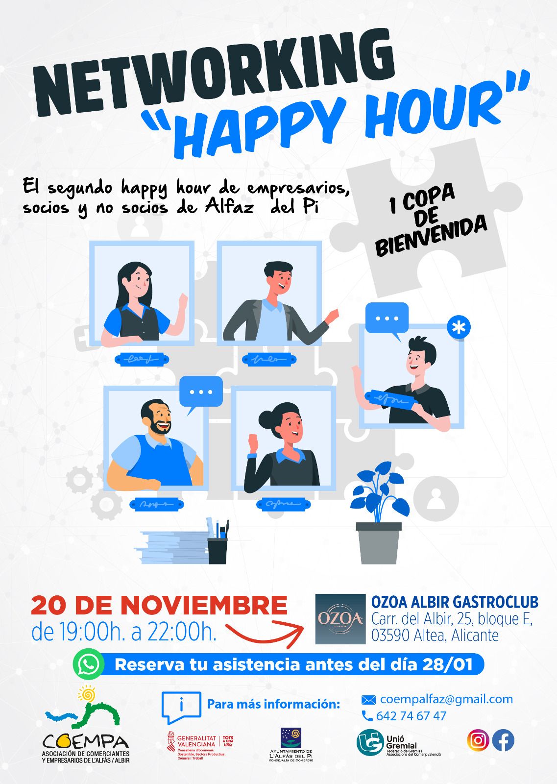 La Asociación de Comerciantes y Empresarios de l’Alfàs del Pi (COEMPA) celebrará el próximo jueves 20 de noviembre, de 19:00 a 22:00 horas, una nueva jornada de networking bajo el nombre ‘Happy Hour Empresarial’, con el objetivo de favorecer la relación entre empresas de distintos sectores, tanto nacionales como internacionales, y fortalecer la colaboración entre negocios ubicados en las diferentes áreas del municipio, especialmente entre el casco urbano y la zona de l’Albir.