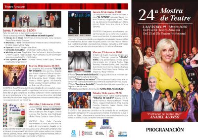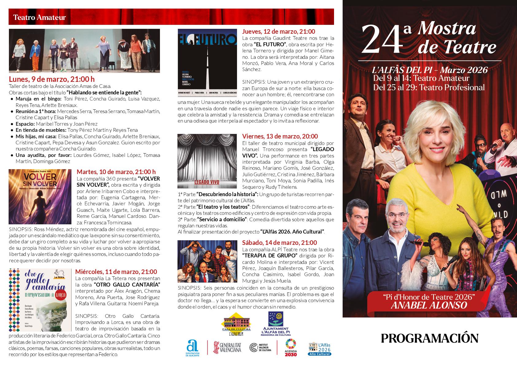 DESCARGA LA PROGRAMACIÓN DE LA 24 MOSTRA DE TEATRE DE L’ALFÀS DEL PI: MostraTeatre2026_triptico
