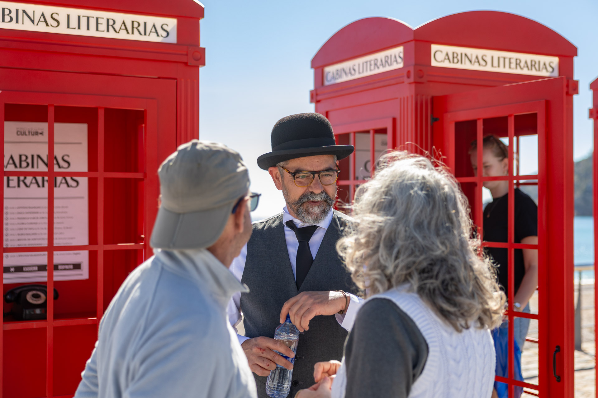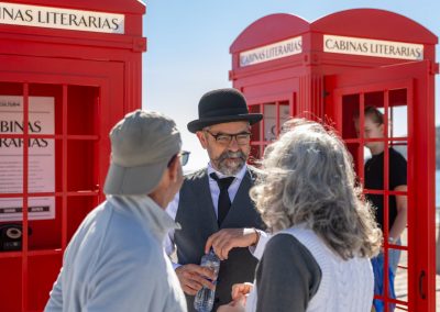 La actividad contó además con la presencia del actor Chema Pizarro, caracterizado como escritor, que actuó como maestro de ceremonias, guiando al público y explicando cómo acceder a las distintas grabaciones de cada cabina, haciendo la experiencia más cercana y participativa.