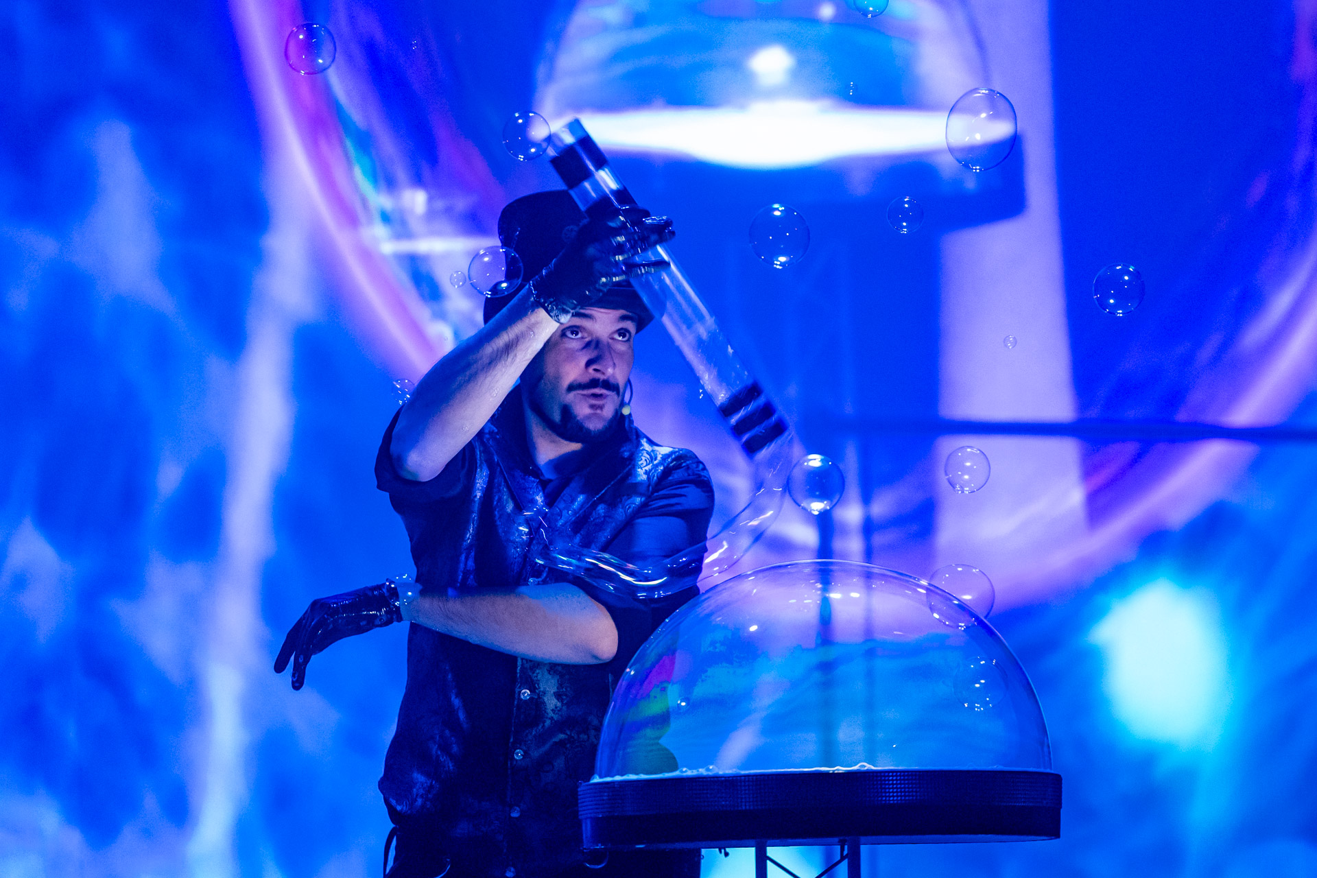Un espectáculo familiar lleno de poesía visual, efectos sorprendentes y una escenografía hipnótica basada en pompas de jabón gigantes. Una combinación de teatro gestual, magia y manipulación de burbujas para crear un universo onírico que atrapa tanto a niños como adultos.
