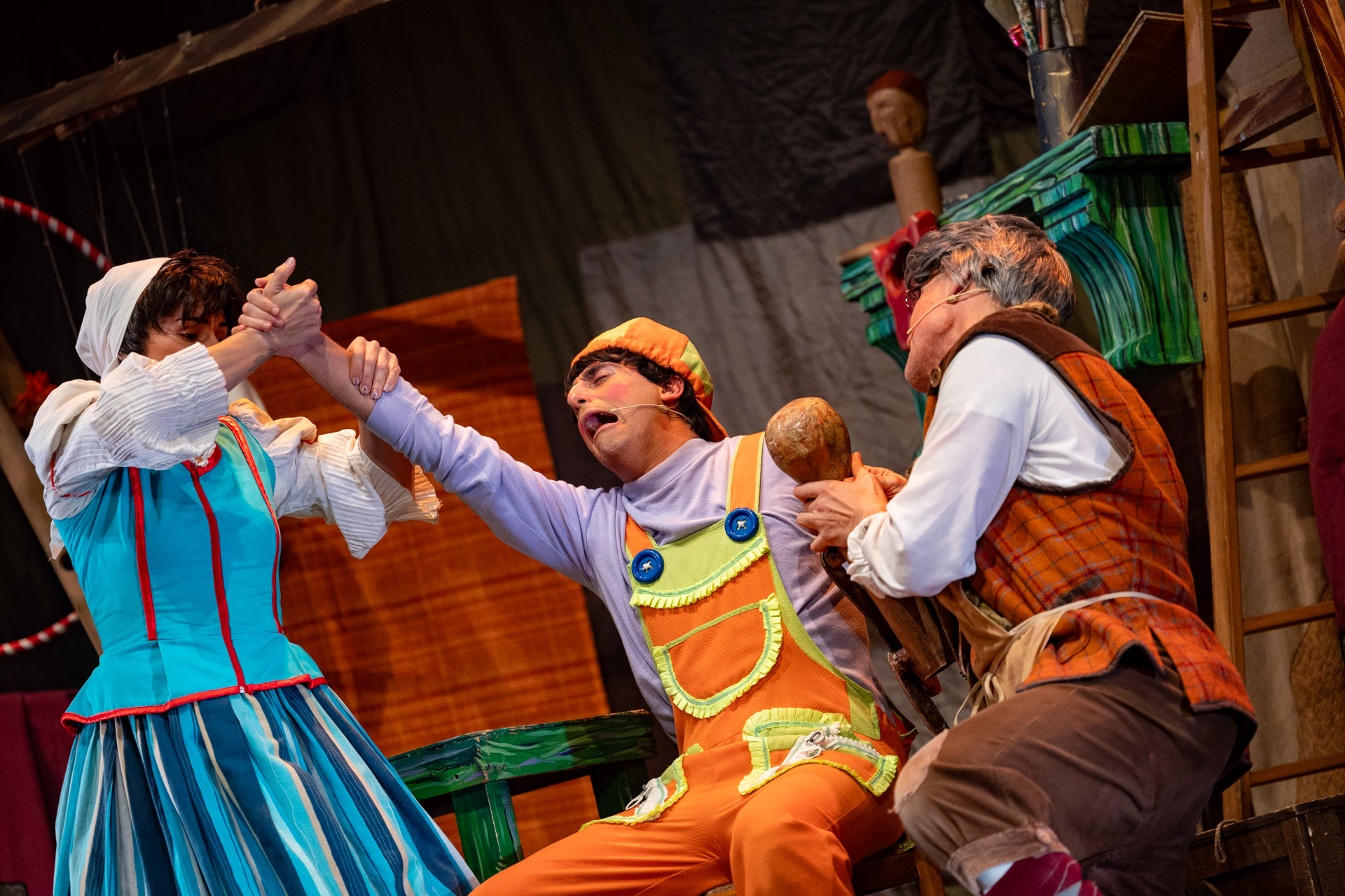 Pinocho es el universo sonoro del teatro musical, adaptado a la esencia del cuento de siempre. La curiosidad de Pinocho por conocer el mundo que le rodea lo apartará del camino de la escuela y lo llevará al teatro de marionetas de Stromboli, a la feria, al fondo del mar, e incluso al estómago de una ballena glotona.