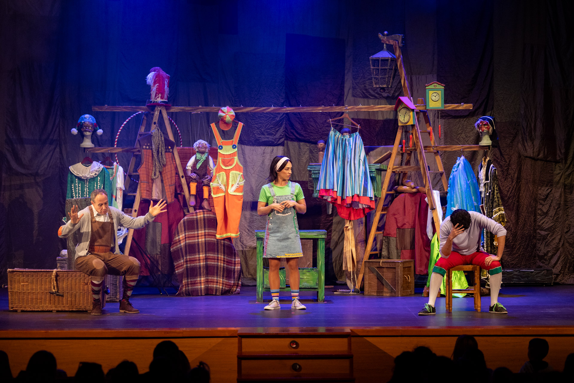Con texto y letras de Josep Mollà, la obra de la compañía Trencadís utiliza el teatro dentro del teatro para recrear las aventuras del entrañable títere, con música en directo, grandes coreografías y una cuidada puesta en escena que invita a soñar y a jugar a ser actor o actriz.