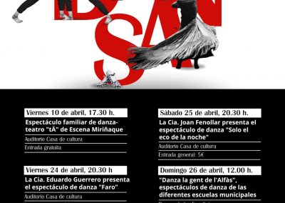 El festival concluirá el domingo 26 de abril, a las 12:00 horas, en el Parque de los Eucaliptos con ‘Dansa la gent de l’Alfàs’, un espectáculo colectivo en el que participarán las diferentes escuelas municipales de danza. La entrada será gratuita.