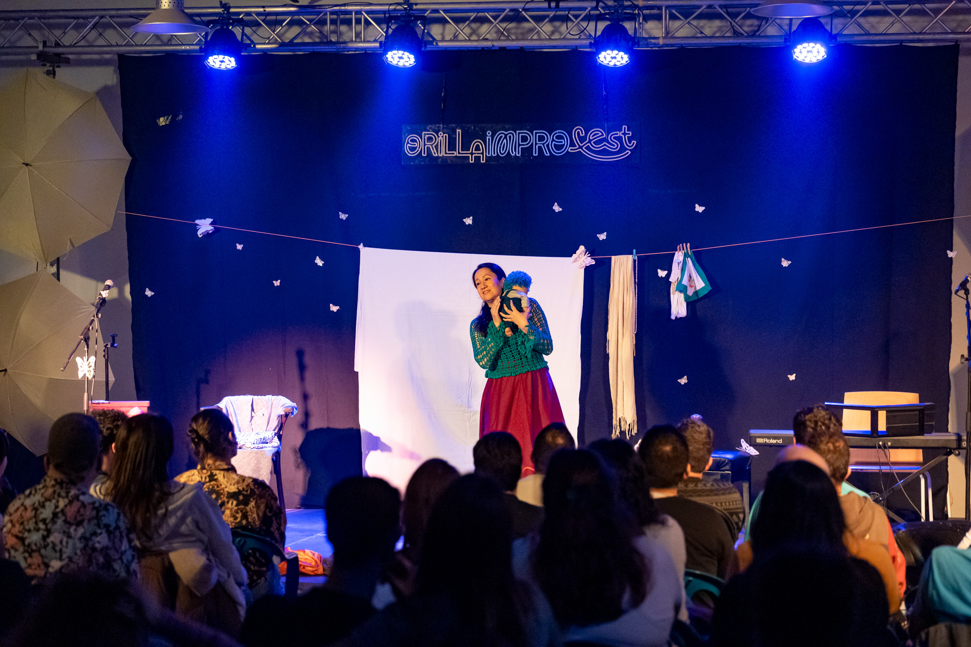 La apertura del festival tuvo lugar en dos espacios emblemáticos de l’Alfàs del Pi. En el Espai Cultural Escoles Velles, que en 2026 celebra su centenario, se representó ‘Éleo’, una propuesta incluida en la Categoría Mar. Se trata de un unipersonal de impro testimonial en el que Carol Hernández emprende un viaje por la memoria, el linaje femenino y los orígenes, tejiendo historias reales y ficticias en un homenaje emotivo y visceral a todas las abuelas.