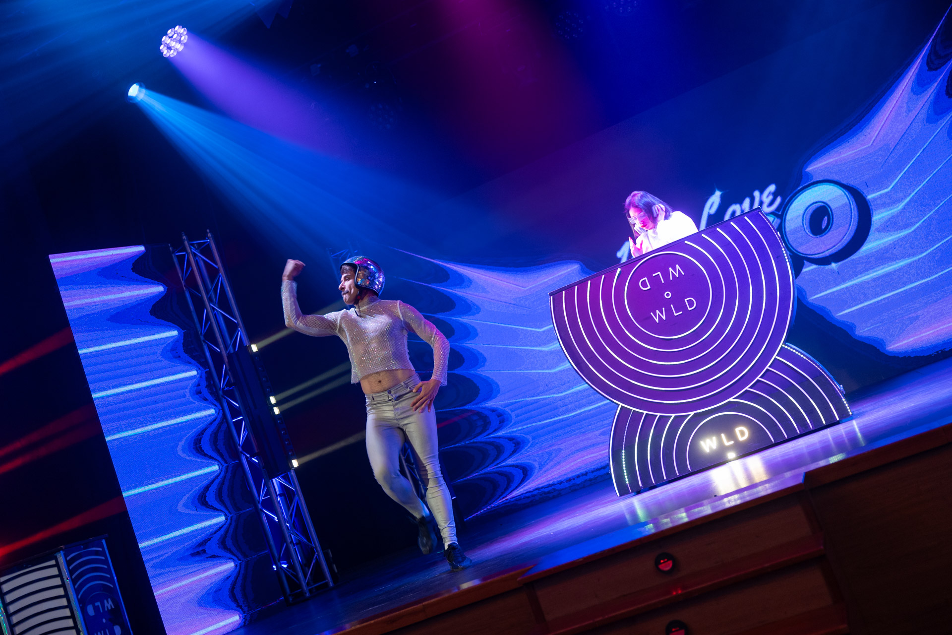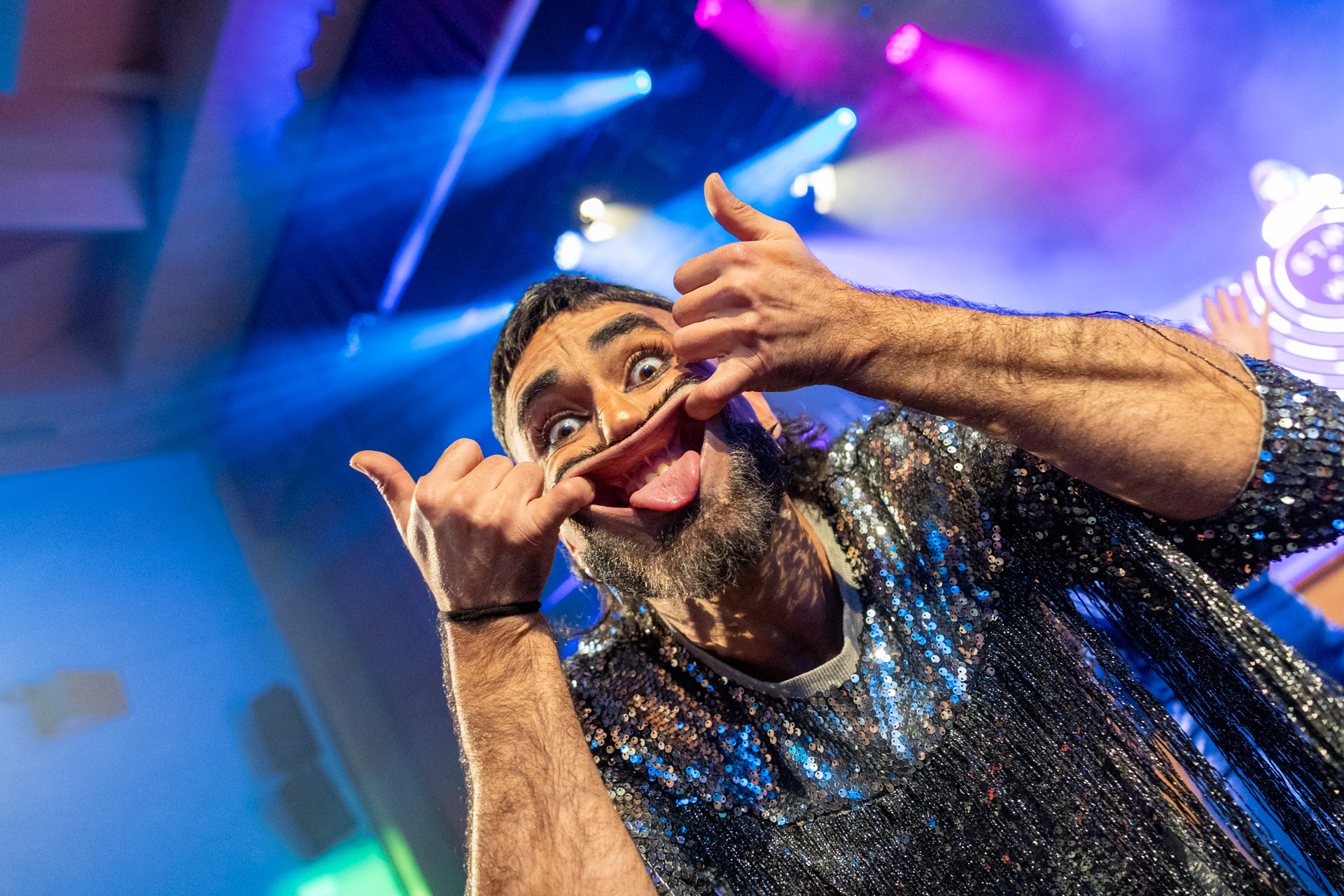 Tras el arranque del ciclo profesional con ‘Un viaje sin retorno’, la Mostra apostó por una propuesta fresca, dinámica y altamente participativa que combina teatro gestual, música y comedia. ‘We Love Disco’ es un homenaje a la cultura musical de los años 70 y 80, marcada por el auge de las pistas de baile, las bolas de discoteca y los grandes éxitos que han trascendido generaciones. A través de una sucesión de escenas llenas de humor y ritmo, la obra invitó al público a sumergirse en un viaje festivo por algunos de los temas más icónicos de la música disco.
