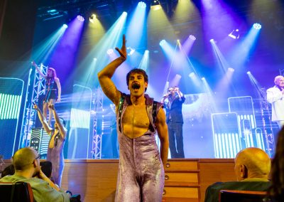 Fiel al estilo inconfundible de Yllana, la obra apostó por el lenguaje visual y el humor sin palabras, con coreografías, gags y situaciones disparatadas que conectaron directamente con la audiencia. La interacción con el público y el carácter desenfadado del montaje transformaron la Casa de Cultura en una auténtica pista de baile, en la que la risa y la música fueron las grandes protagonistas. La cuidada puesta en escena, el vestuario llamativo y la banda sonora reconocible lograron combinar nostalgia y disfrute colectivo en una experiencia escénica única.