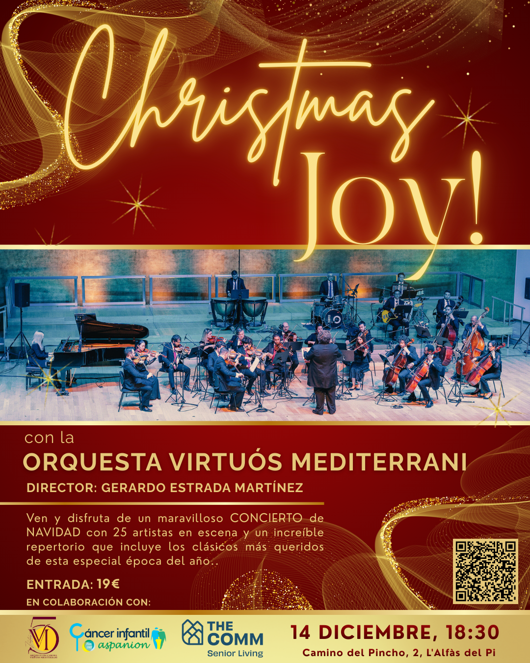 El próximo domingo 14 de diciembre, la Orquesta Virtuós Mediterrani se presentará por primera vez en l’Alfàs del Pi, ofreciendo un concierto navideño único en un escenario muy especial. La cita será a las 18:30 horas en el auditorio de The Comm, donde el público podrá disfrutar de un programa cuidadosamente seleccionado bajo el título ‘Christmas Joy’ (Alegría Navideña).