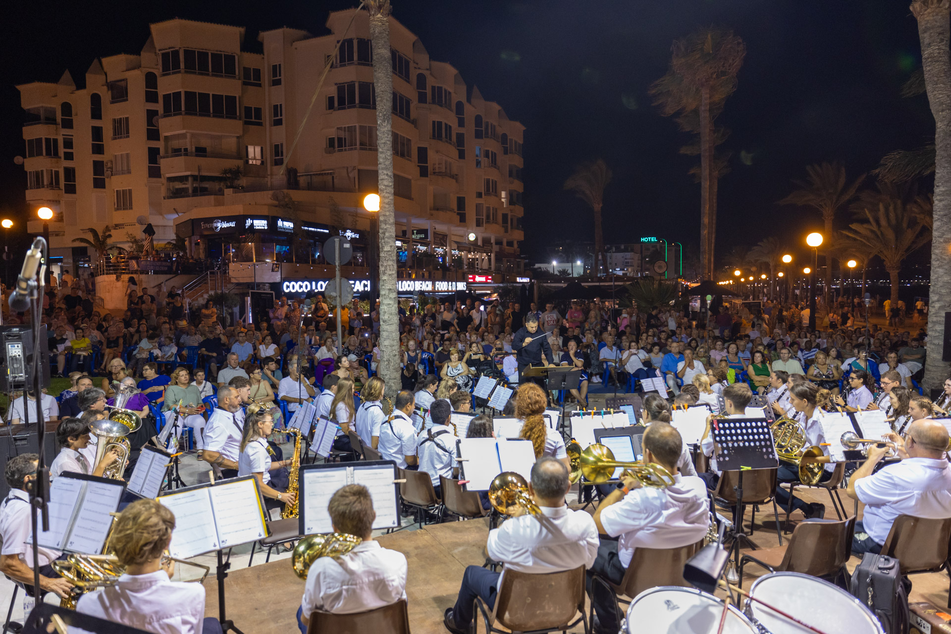 El concierto de verano de La Lira programado en Estiu Festiu se ha convertido en todo un clásico. La noche del sábado la Sociedad Musical de l’Alfás del Pi ofrecía una selección de piezas musicales especial para la ocasión, estilos diferentes, algunos temas muy conocidos, otros no tanto, en una velada única junto al mar.