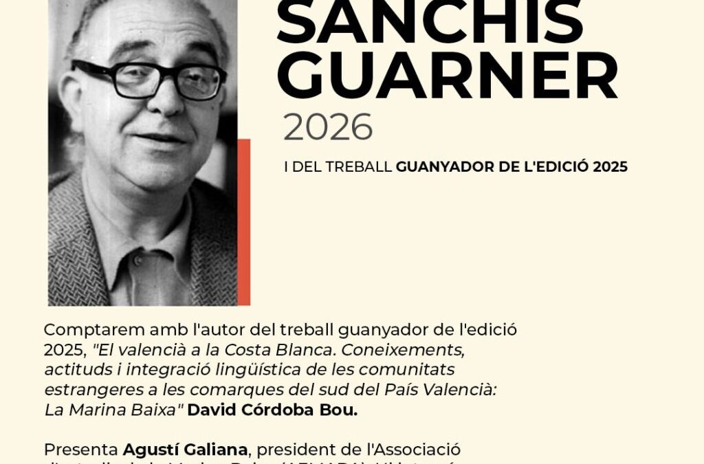La Casa de Cultura de l’Alfàs del Pi acogerá mañana jueves 22 de enero, a las 17:30 horas, el acto de presentación de la Beca Sanchis Guarner 2026, así como del trabajo ganador de la edición 2025.