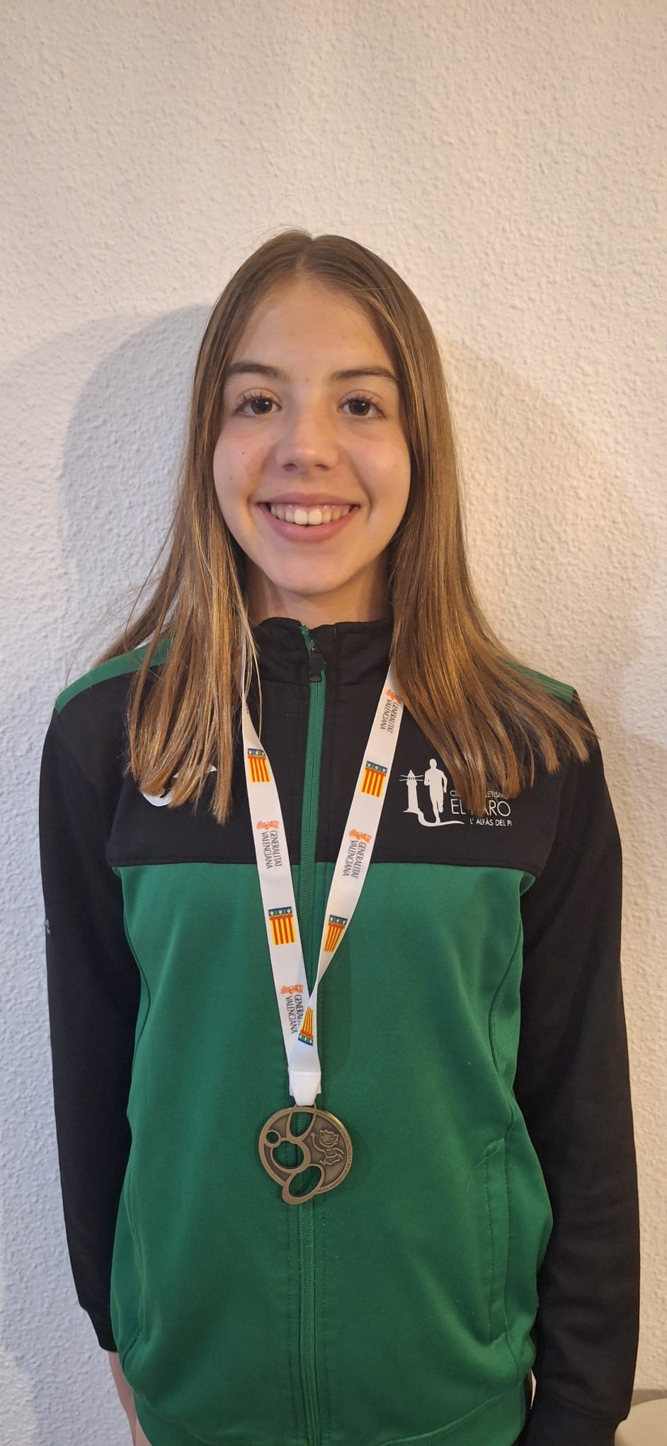 En el Campeonato Provincial de la categoría sub14 en La Nucia participaron tres atletas. El resultado no puede ser más positivo ya que los tres participante obtuvieron dos medallas. Emma Ramos medalla de oro en la prueba de 60m vallas con una marca de 10”32 que, además es su mejor marca personal y Olivia Vega que obtuvo la medalla de bronce en lanzamiento de peso, con una marca de 7m 16 cm, siendo de atleta de primer año.