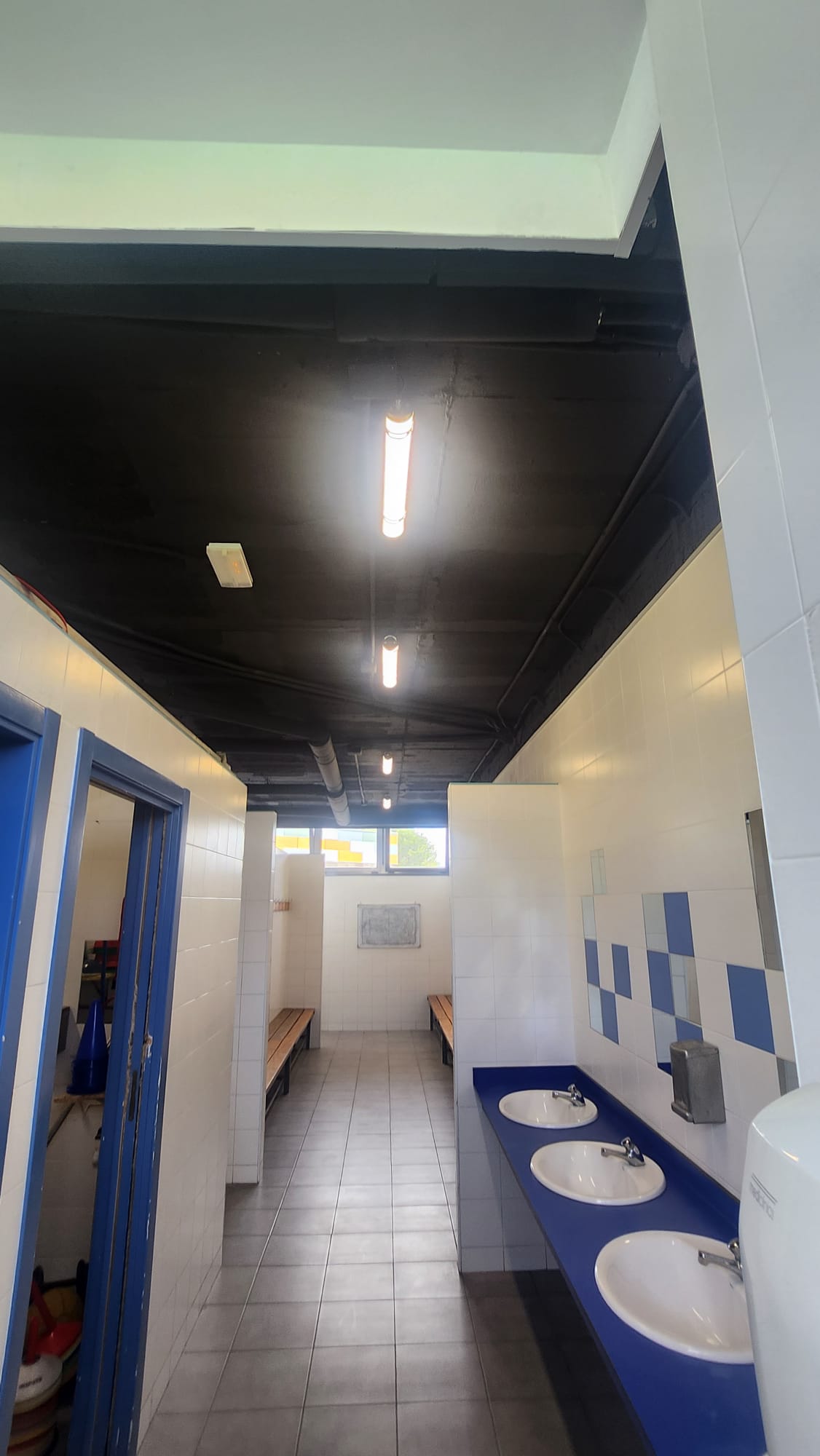 En principio las primeras nuevas luminarias , que además son antivadálicas, se han instalado en los vestuarios del Campo de Fútbol Anexo del Polideportivo.