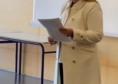 Laura Sevilla, concejala de Educación, ha participado en la lectura del manifiesto en el CEIP Santíssim Crist del Bon Encert, junto a la concejala de Fiestas, Sandra Gómez, y en el CEIP Veles e Vents ha estado acompañada por el concejal de Cultura, Manuel Casado. En el IES L’Arabí, ha sido Martine Mertens, concejala de Residentes Internacionales, quien ha leído el manifiesto, mientras que en el CEIP Racó de l’Albir, la encargada de dar lectura al texto ha sido la concejala de Fondos Europeos, Dolores Albero.