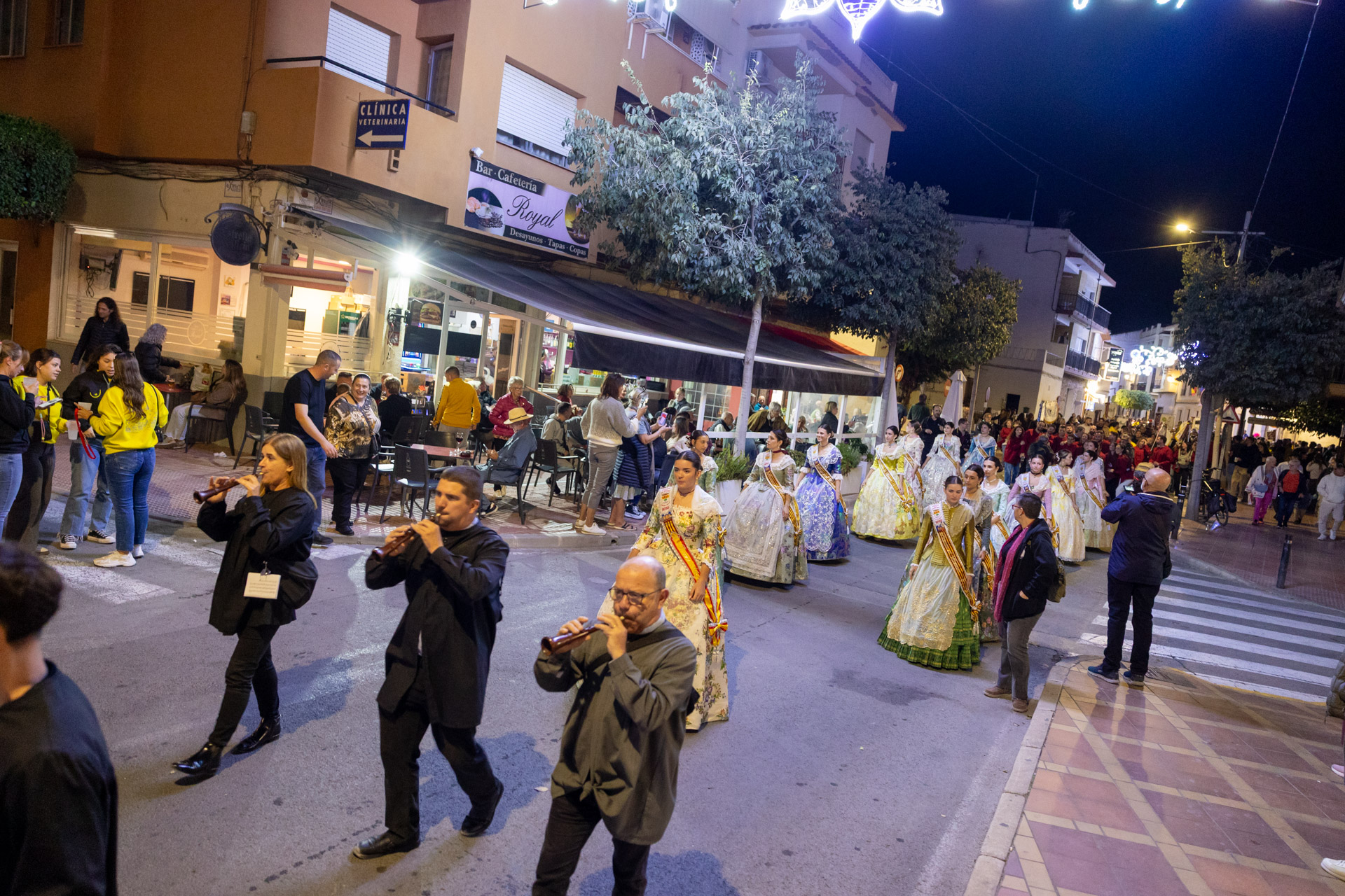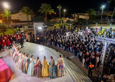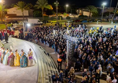 La reina de las fiestas, Lucía Morales Murcia, estuvo acompañada por su Corte de Damas de Honor, formada por Mar Pérez, Erika Elvar, Noa Arazola, Bárbara Murciano, Blanca Gómez, Aitana Such, María Uriel, Daniela Pérez, Paula Mas, Sophie Ferrero, Irene Such, Alejandra Marín, Sofía Pérez y Judit Aniorte. Este acto institucional dio paso a la entrada de las peñas, momento que marca oficialmente el inicio de las celebraciones.
