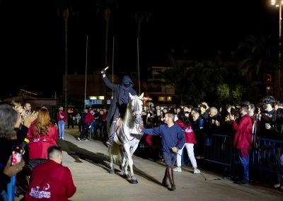 Anoche se dio el pistoletazo de salida a las Fiestas del Jubileo y del Santísimo Cristo del Buen Acierto de l’Alfàs del Pi con el tradicional pregón, que en esta ocasión corrió a cargo del DJ David Furylo, quien llegó montado a caballo a la explanada de la Casa de Cultura, con el rostro cubierto para mantener la intriga sobre la identidad del pregonero.