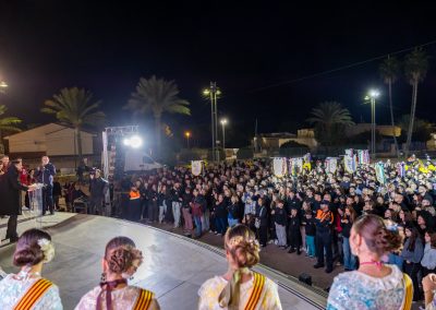 Anoche, con su pregón y su actuación posterior, hizo vibrar a las casi mil personas que, integradas en 44 peñas, participan activamente en las Fiestas de l’Alfàs. La velada se inició con la entrada de las peñas, momento que marca el inicio oficial de las celebraciones y que da paso a varios días de actividades festivas, culturales y religiosas, que se prolongarán hasta el 10 de noviembre, culminando con el Día del Santísimo Cristo del Buen Acierto, el más importante para el municipio.