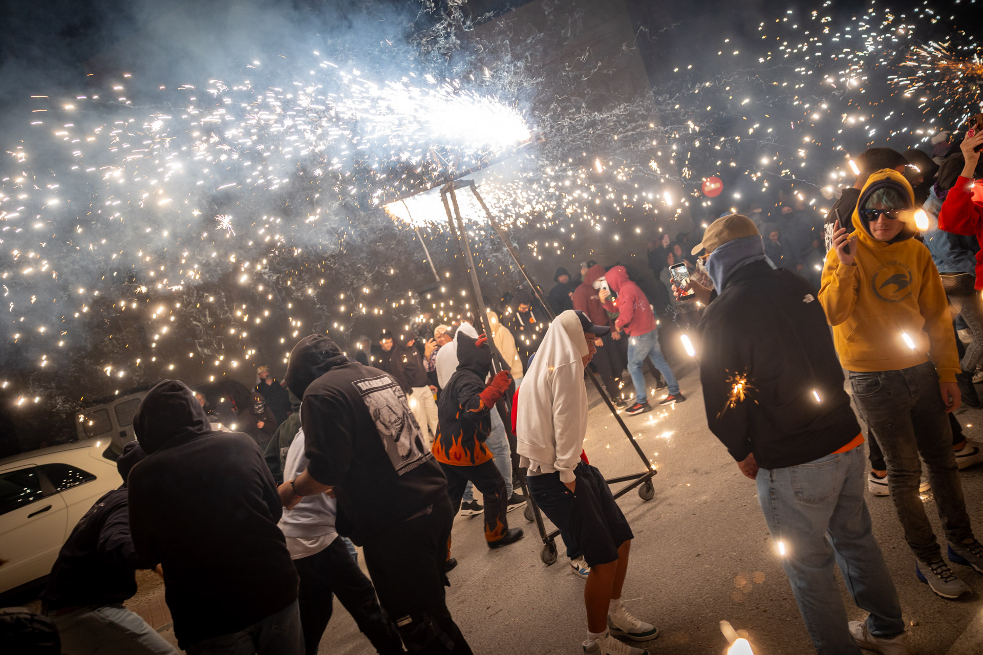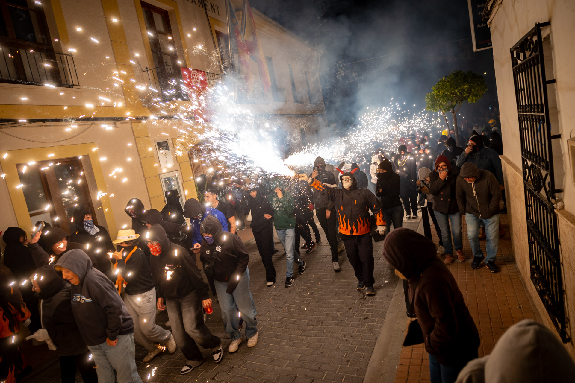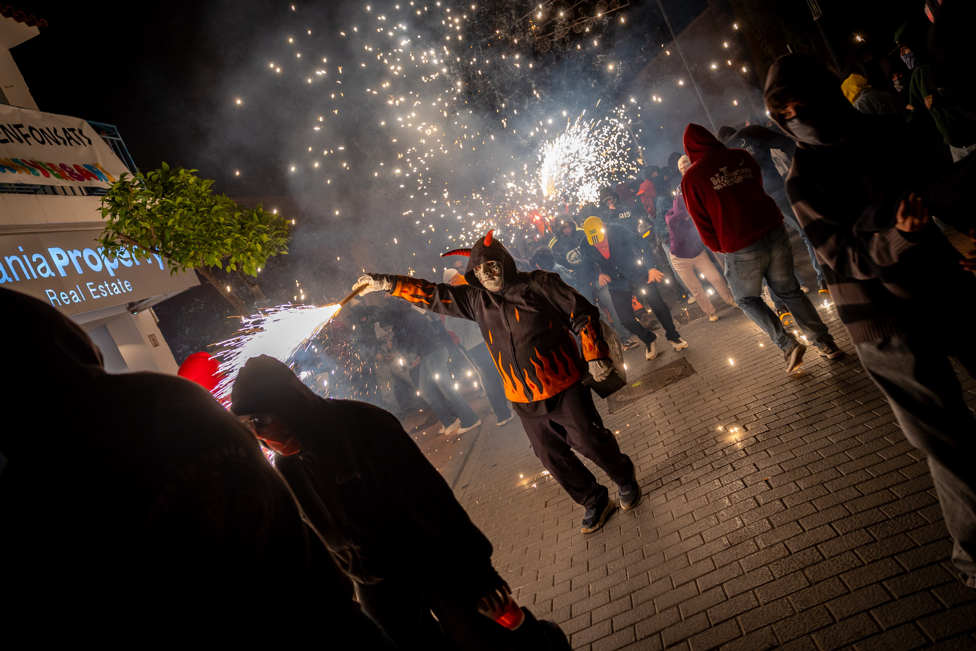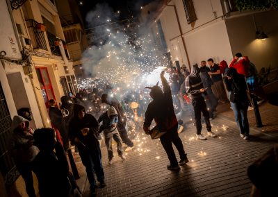 Las calles de l’Alfàs del Pi se llenaron anoche de luz, pólvora y ritmo con el espectacular ‘correfocs’, a cargo de la Colla Dimonis de Mislata, uno de los grupos más reconocidos de la Comunitat Valenciana en este tipo de representaciones festivas.
