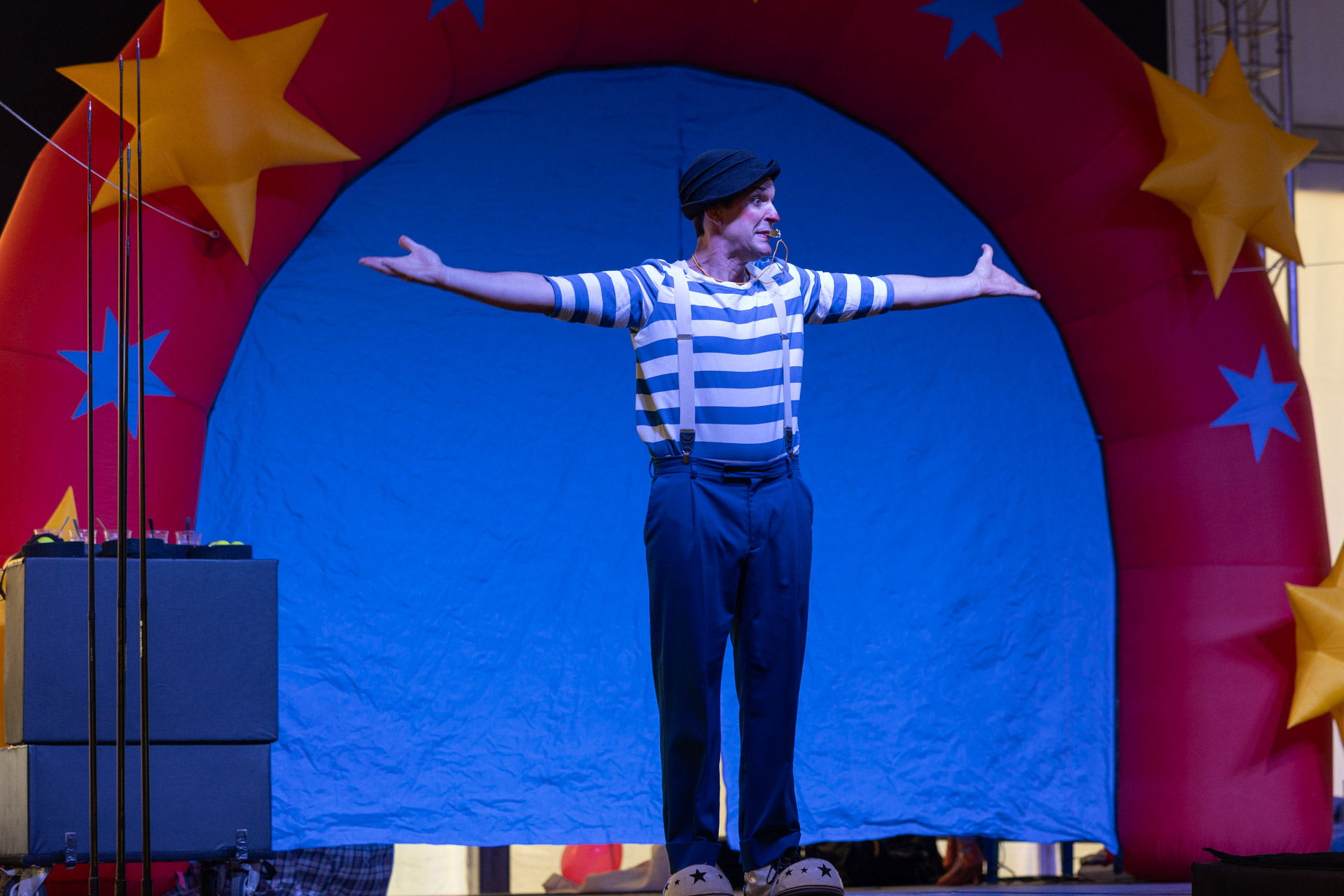 La carpa de fiestas de l’Alfàs del Pi acogió ayer el espectáculo infantil circense ‘Zapatones’, una propuesta cargada de humor, música y diversión que reunió a numeroso público dentro de la programación de las Fiestas del Jubileo y del Santísimo Cristo del Buen Acierto 2025. El público disfrutó del espectáculo que combinó malabares, equilibrios, magia y humor.
