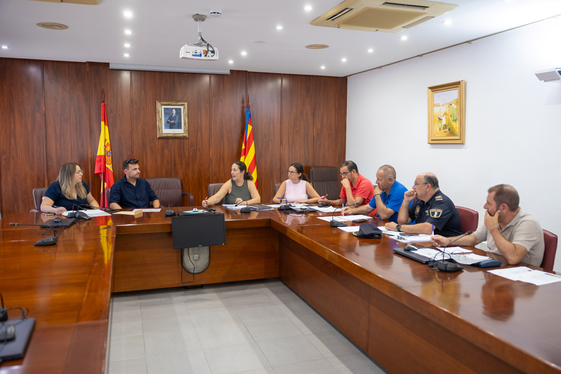 Responsables de las diferentes áreas municipales trabajan con la concejalía de Fiestas del Ayuntamiento de l’Alfàs del Pi, en la coordinación del dispositivo especial de vigilancia, que estará operativo durante las próximas Fiestas de l’Albir. que se van a celebrar del 22 al 24 de agosto en el Parque de los Eucaliptos.