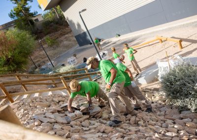 El proyecto cuenta con 20 participantes, distribuidos en dos itinerarios formativos: albañilería y jardinería, con 10 personas en cada especialidad. En el caso de albañilería, se imparten los módulos ‘Operaciones auxiliares de acabados rígidos y urbanización’ y ‘Pavimentos y albañilería de urbanización’. Por su parte, el alumnado del itinerario de jardinería cursa ‘Actividades auxiliares en viveros, jardines y centros de jardinería’ e ‘Instalación y mantenimiento de jardines y zonas verdes’.