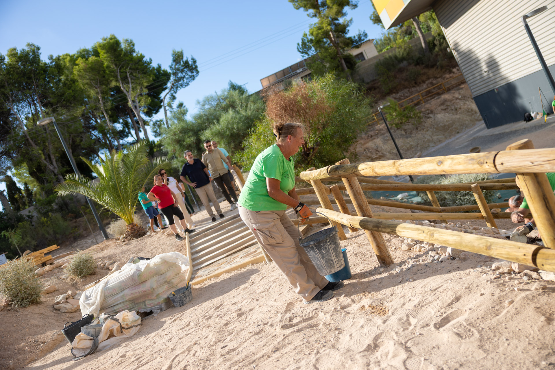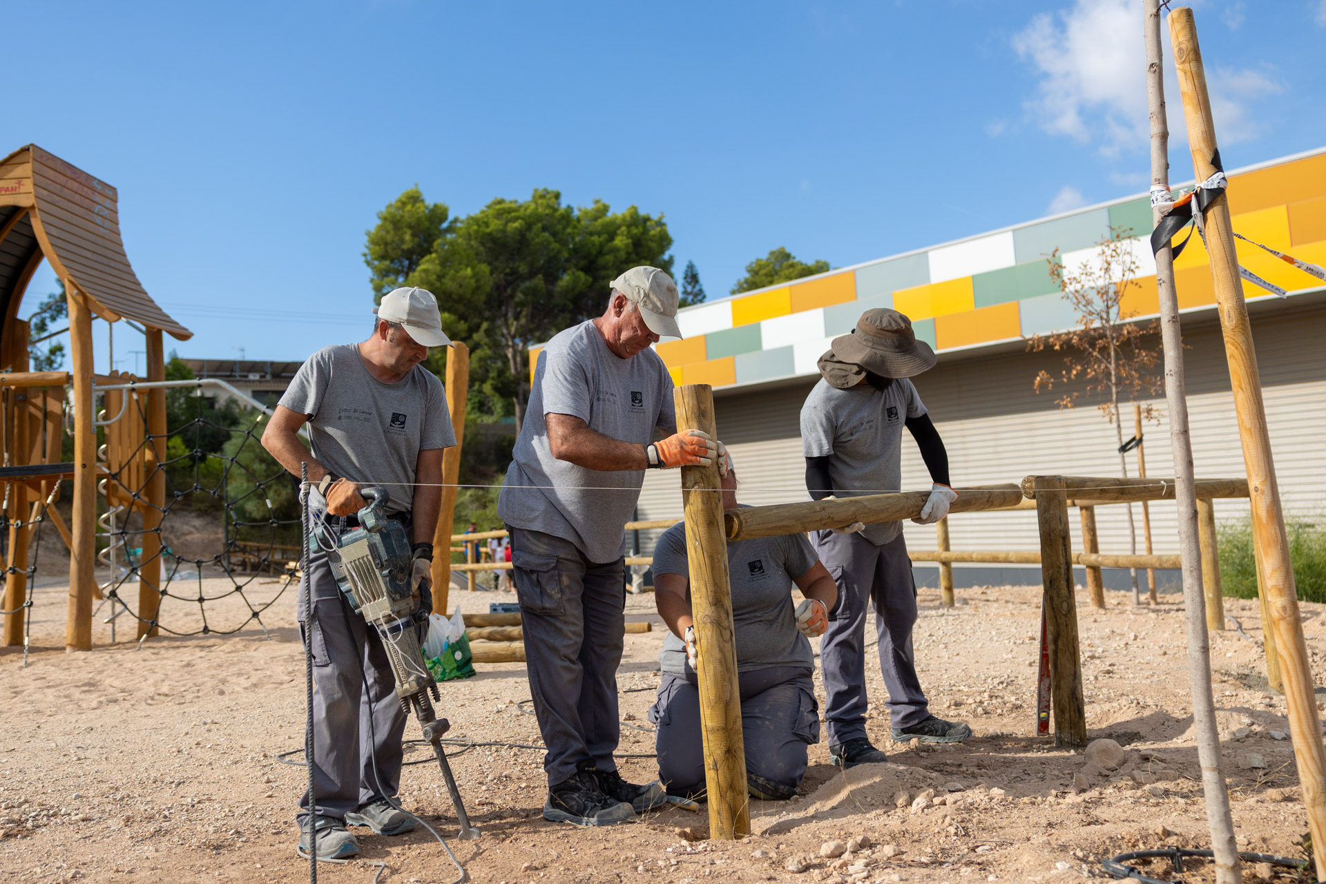 Las clases teóricas se imparten en el Centro de Formación Ocupacional (CFO) de l’Alfàs del Pi, mientras que las prácticas se realizan en distintos espacios del municipio, como los huertos de ocio de l’Arabí y la mencionada zona verde tras el Pabellón Pau Gasol. En esta última, se está trabajando actualmente en la colocación de un vallado perimetral en el área del parque infantil, así como en la adecuación de escaleras y zonas verdes, mejorando tanto la accesibilidad como la seguridad y estética del entorno.