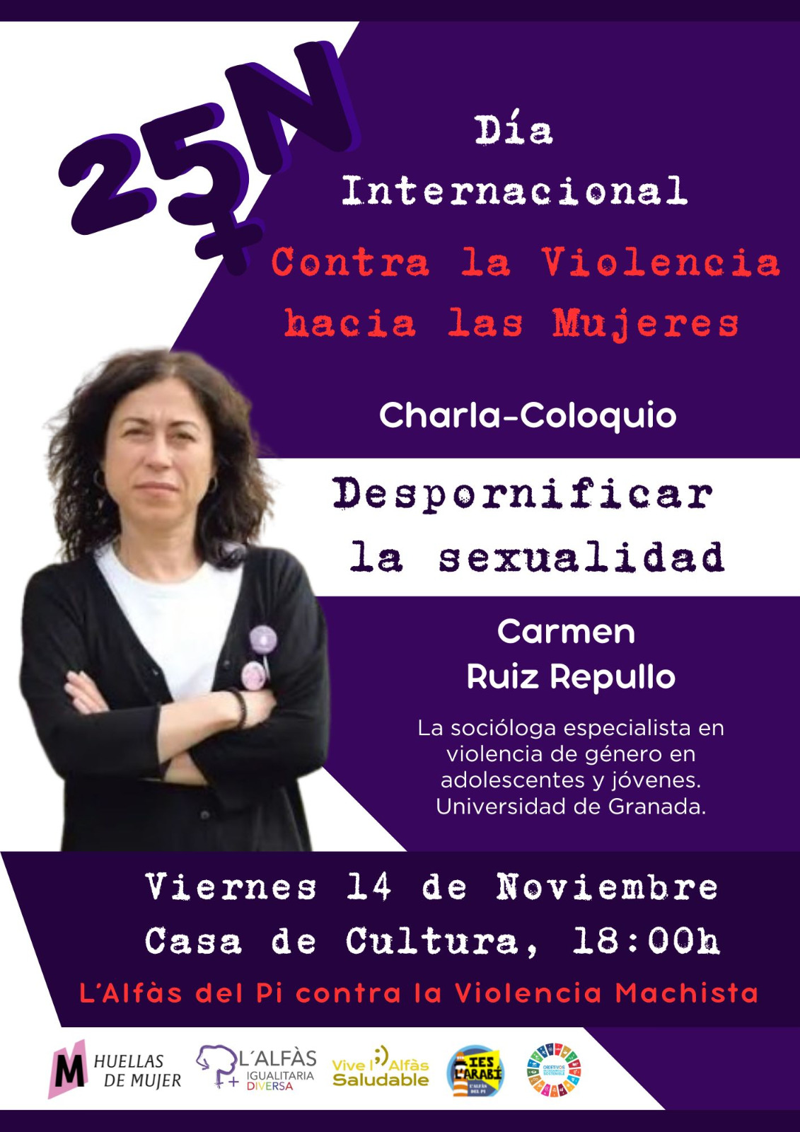 La charla será impartida por Carmen Ruiz Repullo, socióloga y profesora de la Universidad de Granada, reconocida experta en violencia de género y adolescencia. Ruiz Repullo ha dedicado su carrera a estudiar las dinámicas de la violencia en el ámbito juvenil, especialmente en relación con los factores socioculturales que influyen en la percepción de las jóvenes sobre la sexualidad y las relaciones afectivas. A lo largo de su intervención, la socióloga abordará la necesidad de despornificar la sexualidad para prevenir la violencia y fomentar una visión más igualitaria y respetuosa entre los jóvenes.