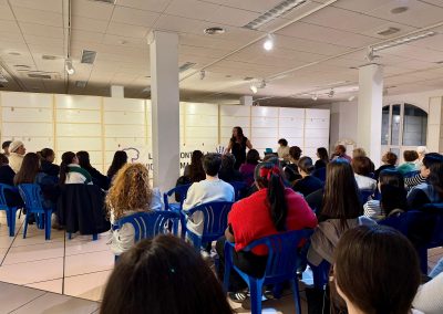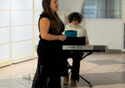La Sala de Exposiciones acogió posteriormente ‘Cuentos al oído’, una sesión de narración oral a cargo de Beatriz Pérez, de Va de Cuentos, acompañada al teclado por Almudena Martínez. A través de relatos tradicionales y leyendas, se ofreció un espacio íntimo para la reflexión sobre la igualdad, la diversidad y el respeto.