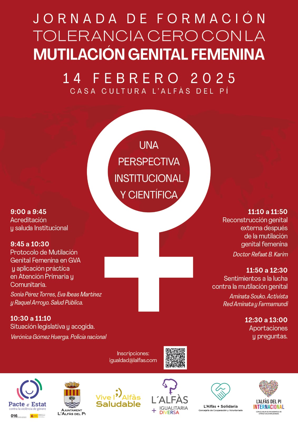 El Ayuntamiento de l’Alfàs del Pi ha organizado, para el próximo 14 de febrero, una jornada de sensibilización e información sobre la Tolerancia Cero con la Mutilación Genital Femenina. En la Casa de Cultura de 09:00 horas a 13:00 horas, desde una perspectiva institucional y científica.