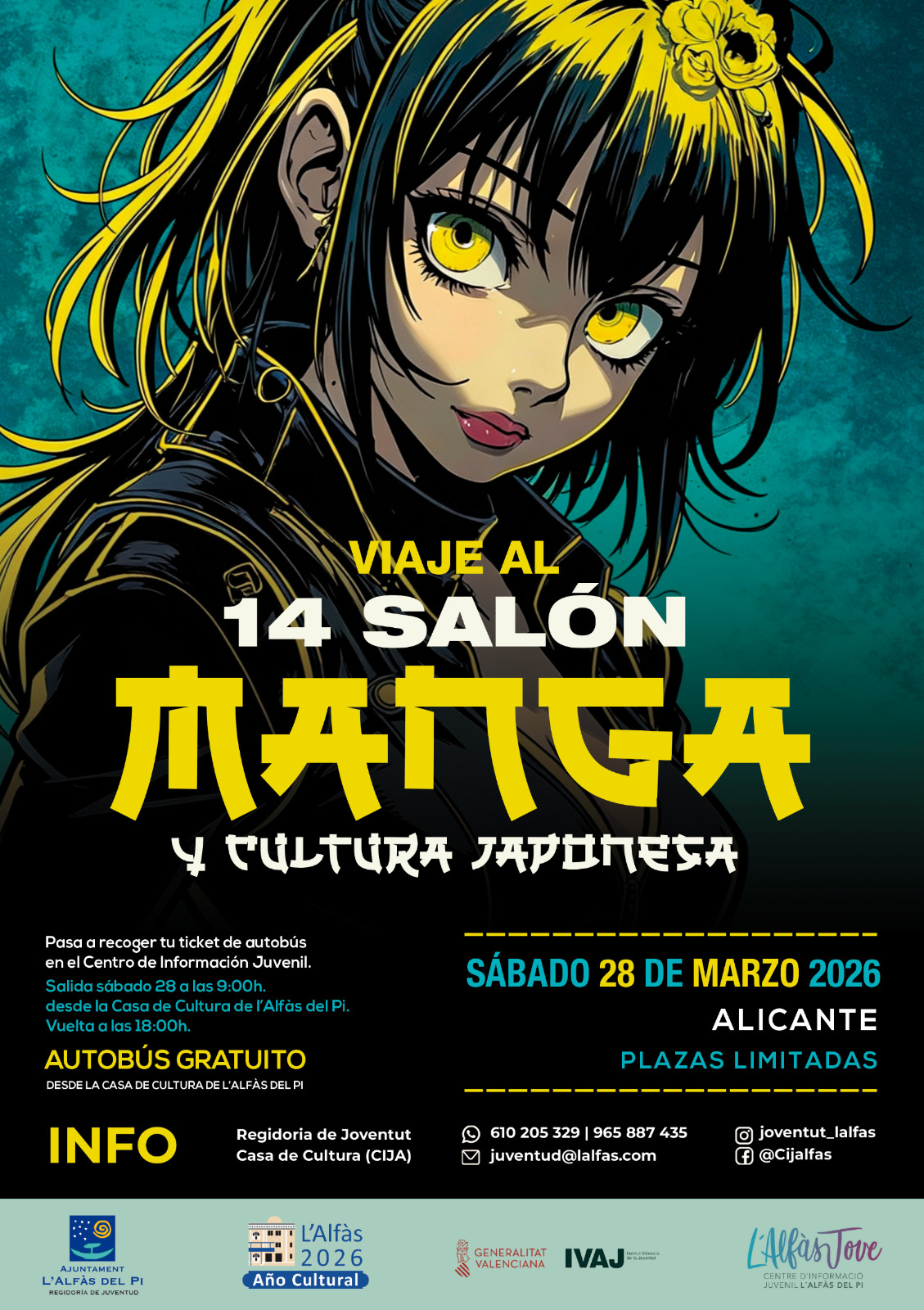 Con motivo de la celebración en Alicante del XIV Salón del Manga y la Cultura Japonesa, la concejalía de Juventud del Ayuntamiento de l’Alfàs del Pi ha organizado un viaje gratuito en autobús para facilitar la asistencia de los jóvenes del municipio a este destacado evento cultural.