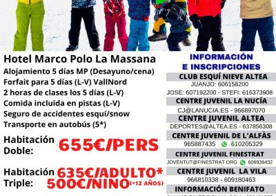 Según ha explicado la concejala de Juventud de l’Alfàs, Carolina Solbes, este año, la Campaña de Esquí se compone de tres viajes a las estaciones de Baqueira, Grandvalira y Vallnord, que se desarrollarán durante los meses de enero y febrero.