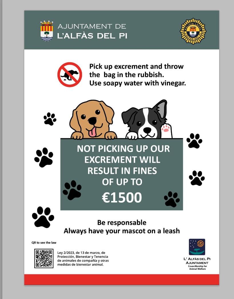 El Ayuntamiento de l’Alfàs del Pi a través de una campaña informativa en vallas, mupis y mobiliario urbano, informa a la población de la necesidad de recoger los excrementos caninos en la vía publica y jardines, con mensajes apelando a la conducta cívica y colaboración general, para mejorar la limpieza del municipio.