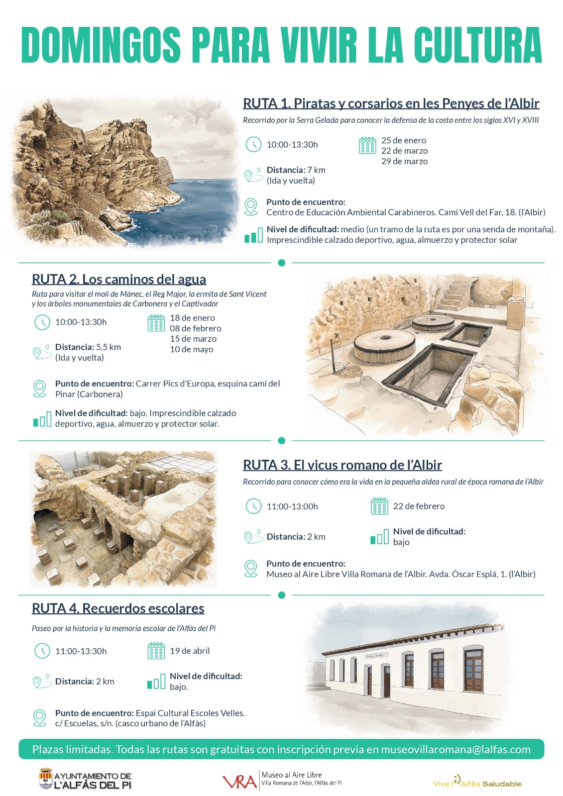La actividad se enmarca en el proyecto ‘Domingos para vivir la Cultura’, integrado dentro de la estrategia municipal ‘L’Alfàs 2026. Año Cultural’, un amplio programa de rutas y visitas guiadas que se desarrolla hasta el mes de mayo con el objetivo de acercar tanto a la ciudadanía como a los visitantes la riqueza cultural, histórica y medioambiental del municipio.