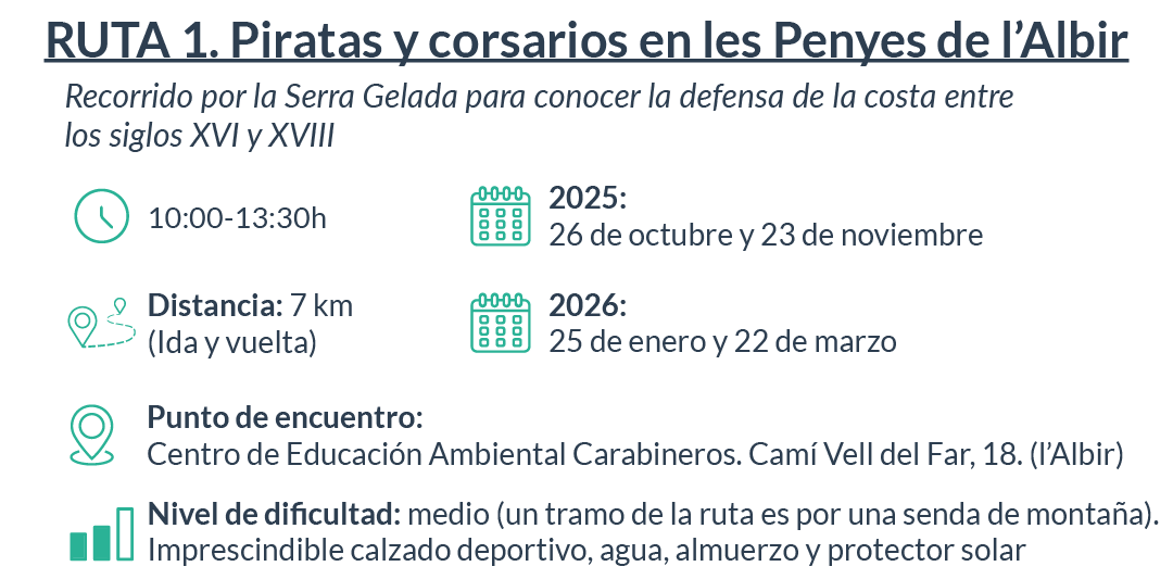 La concejalía de Patrimonio del Ayuntamiento de l’Alfàs del Pi organiza una nueva edición de la ruta guiada ‘Piratas y corsarios en les Penyes de l’Albir’, una propuesta cultural y medioambiental que tendrá lugar este domingo 23 de noviembre, a las 10:00 horas.