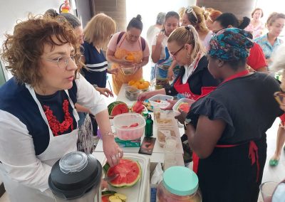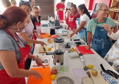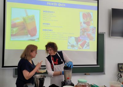 Un taller práctico en el que las personas asistentes han aprendido a preparar aguas refrescantes elaboradas con frutas, especias y hielo, además de leches vegetales, como la de avena y almendra, y sabrosos helados. Alimentos saludables con los que se pretende ayudar a la población a reducir el consumo de azúcar en su vida diaria.