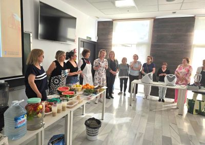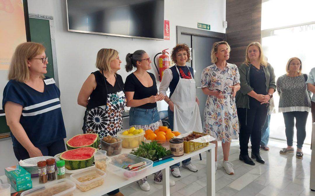 El taller de cocina saludable de esta mañana ha corrido a cargo de Amparo Aroca, higienista dental de la Unidad de Odontología Preventiva; Nuria López, enfermera, y Antonia María Jiménez y Carolina Ramírez, enfermeras de familia y comunitaria.