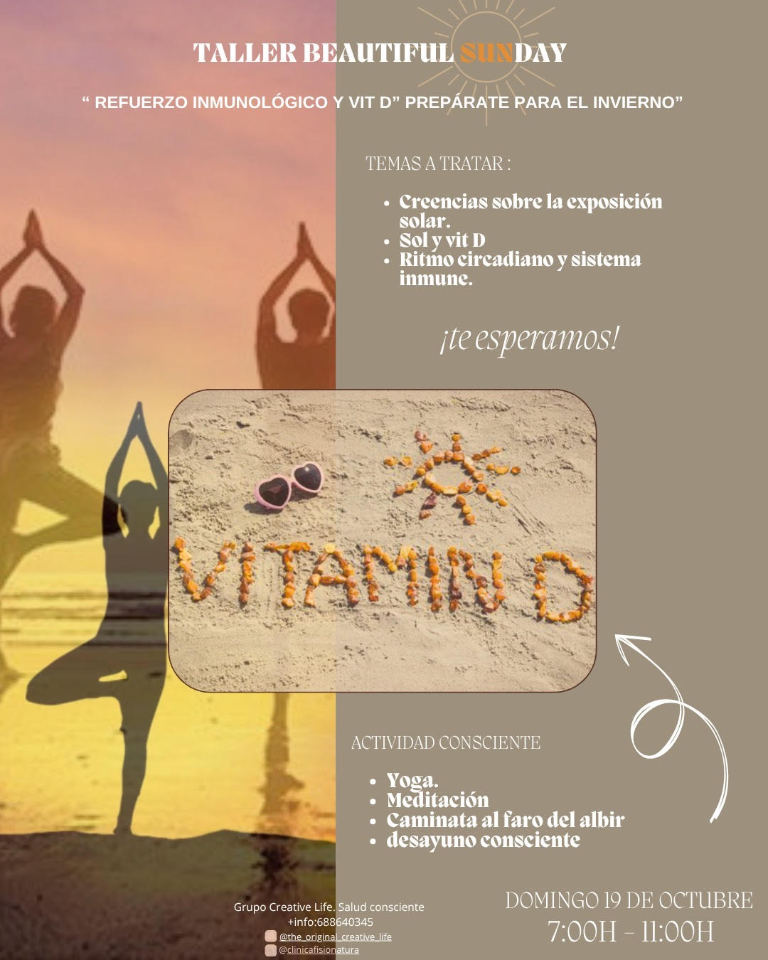 El próximo domingo 19 de octubre, de 7:00 a 11:00 horas, la playa del Racó de l’Albir acogerá el taller gratuito ‘Refuerzo inmunológico y vitamina D: prepárate para el invierno’, una actividad organizada por el Grupo Creative Life y la clínica Fisionatura, en colaboración con la concejalía de Sanidad del Ayuntamiento de l’Alfàs del Pi y enmarcada en el programa municipal ‘Vive L’Alfàs Saludable’.