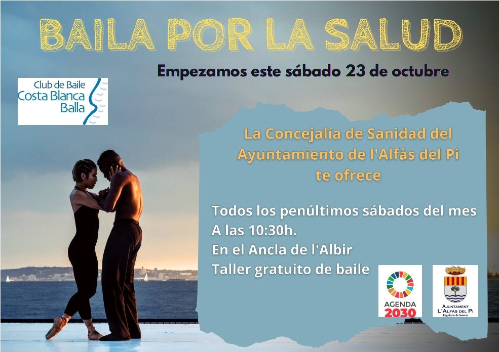 ‘Baila por la Salud’ es el reclamo del nuevo Taller gratuito de baile que comienza este sábado, 23 de octubre a las 10.30 horas en la playa de l’Albir, en las inmediaciones del ancla, escultura de Jorge Castro.
