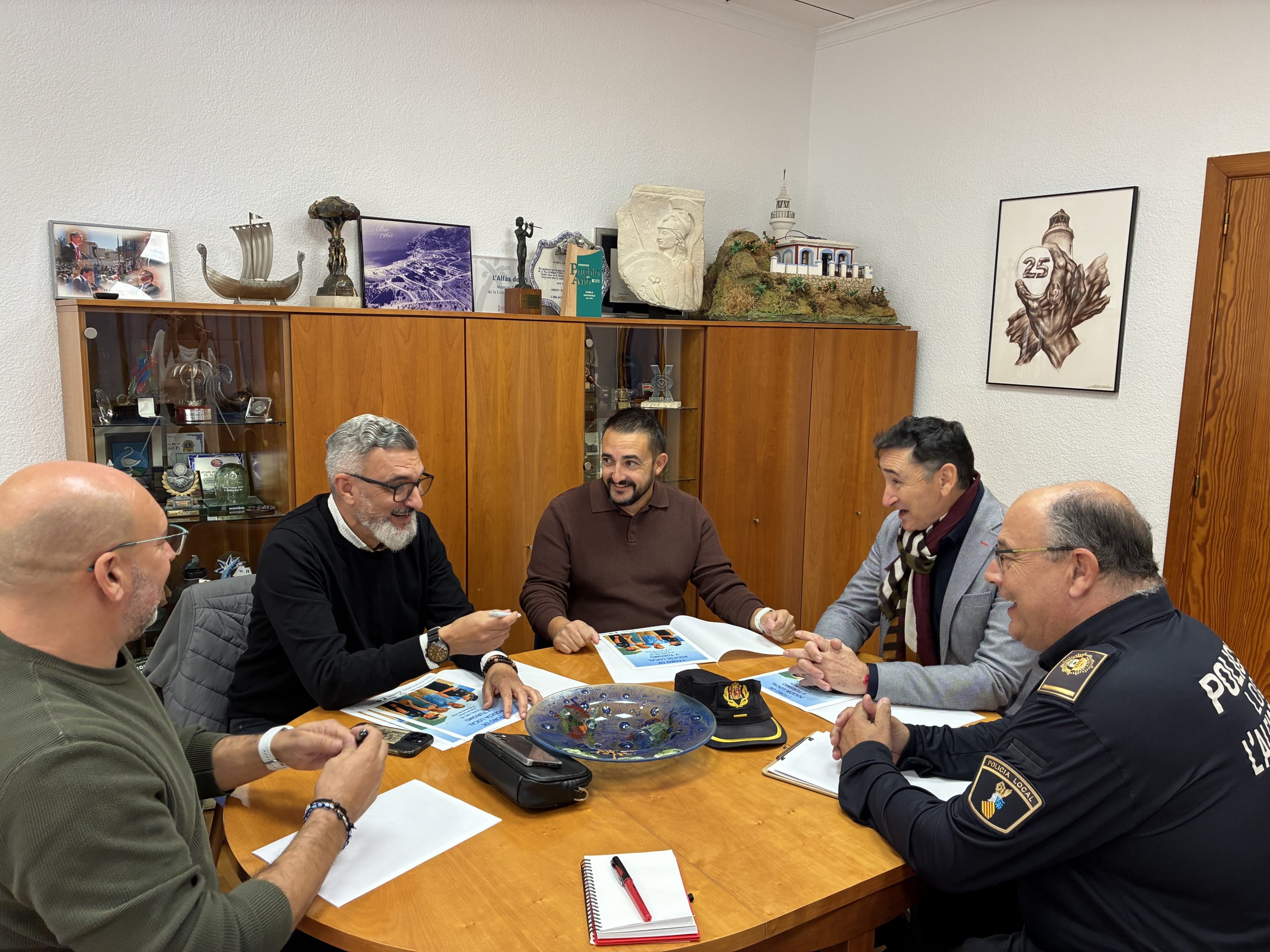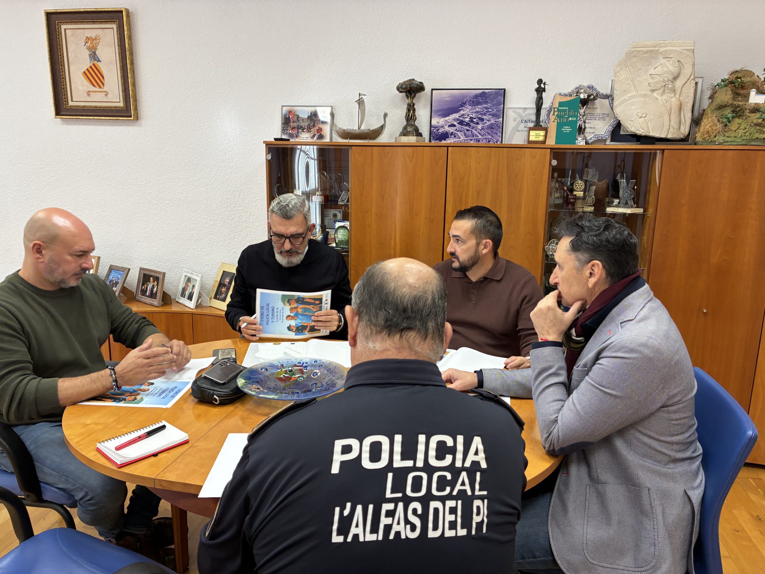 La Asociación de Jefes y Mandos de Policía Local de la Comunitat Valenciana (UnijeMpol) va a celebrar su Asamblea Ordinaria el próximo viernes, 28 de noviembre, en l’Alfàs del Pi, según información facilitada por el concejal de Seguridad Ciudadana, Toni Such, al término de una reunión de trabajo, a la que han acudido y participado el inspector jefe de la Policía Local de l’Alfàs, Joaquín Ortíz, el inspector de Policía Local de Benidorm, Antonio Ortega; el oficial de Policía Local de l’Alfàs Iván Fernández, y el concejal de Turismo, Luis Morant.